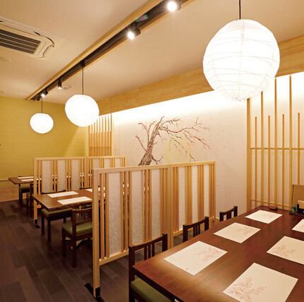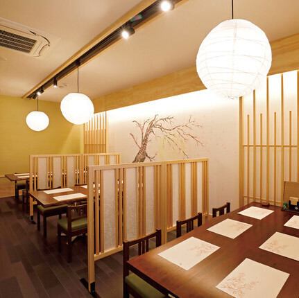 店内は上品で落ち着いた雰囲気。ゆったりとした空間に広々とした通路。車椅子やベビーカーでのご入店も可能です。普段のお食事からご宴会までお気軽にご利用くださいませ。
